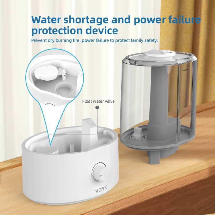 Unser Luftbefeuchter ist so konzipiert, dass er einen 360-Grad-Nassschutz bietet, der nasse Stellen auf dem Boden verhindert. Das bedeutet, dass Sie es bedenkenlos in der Nähe von Kindern und Haustieren verwenden können.
