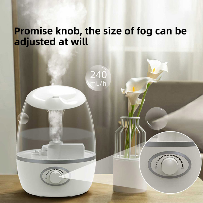 Der Luftbefeuchter erzeugt mithilfe der Ultraschallwelle 1,7 Millionen Hochfrequenzschwingungen pro Sekunde, wandelt den Wassernebel in ultrafeine Partikel von 1 bis 5 Mikrometern um und verteilt den Wassernebel über das pneumatische Gerät in der Luft.