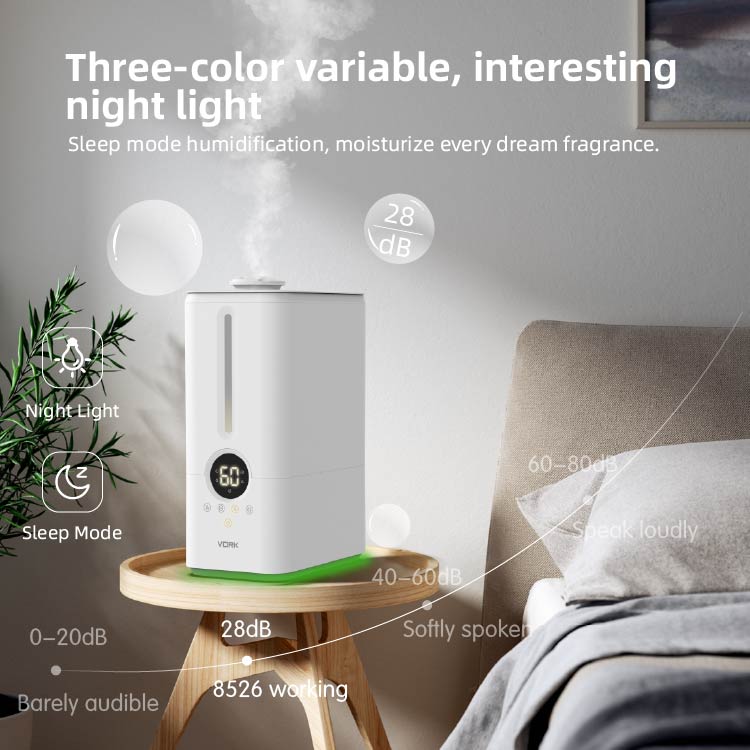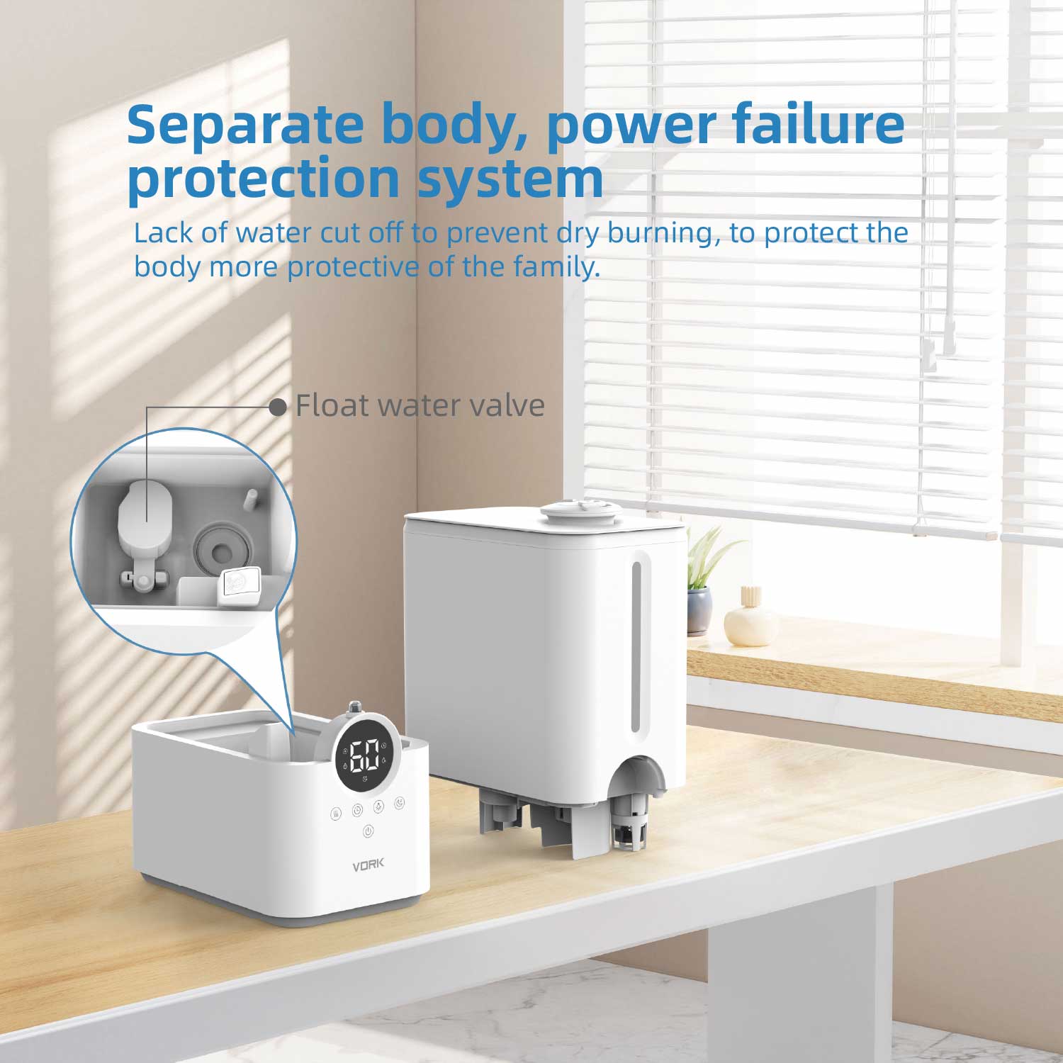 Unser Luftbefeuchter ist so konzipiert, dass er einen 360-Grad-Nassschutz bietet, der nasse Stellen auf dem Boden verhindert. Das bedeutet, dass Sie es bedenkenlos in der Nähe von Kindern und Haustieren verwenden können.