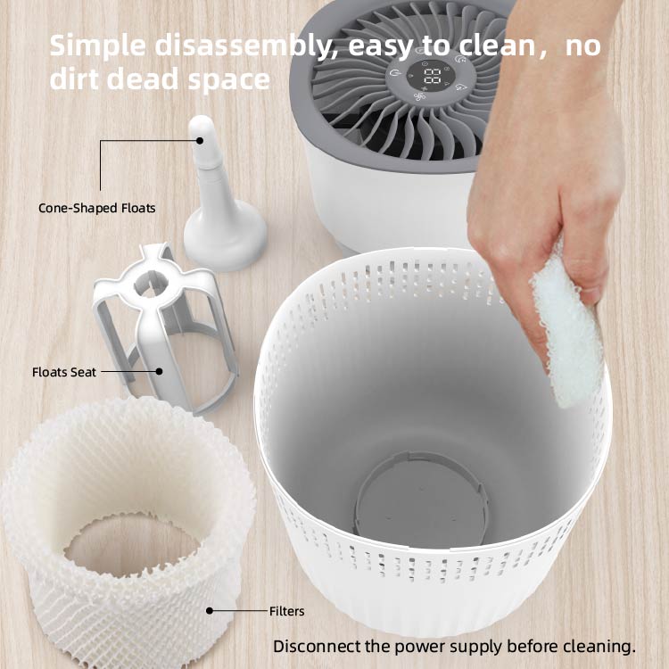 The humidifier is suitable for indoor environment with an area of 21~30 square meters. Through its powerful humidification function, it can rapidly increase the relative humidity in the room, reduce the static electricity in the air, and effectively relieve the dry discomfort of the eyes, throat, nasal cavity and other parts.