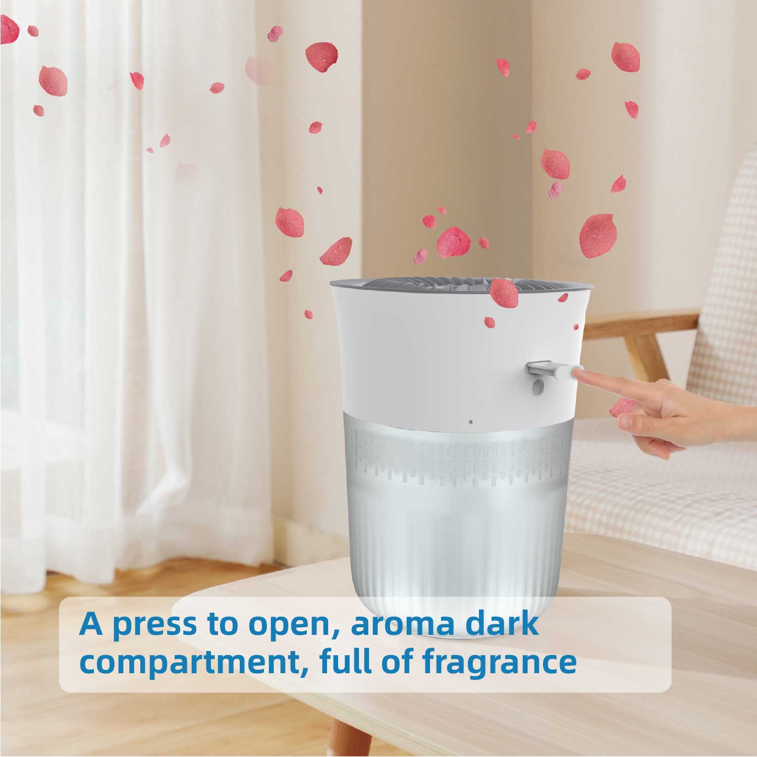 the humidifier is optional aromatics function, the user in the use of the need to add aromatics, can make the air in the room become more fragrant. At the same time, the essential oil molecules in the aromatics can effectively improve the body's mood, pressure and other functions.
