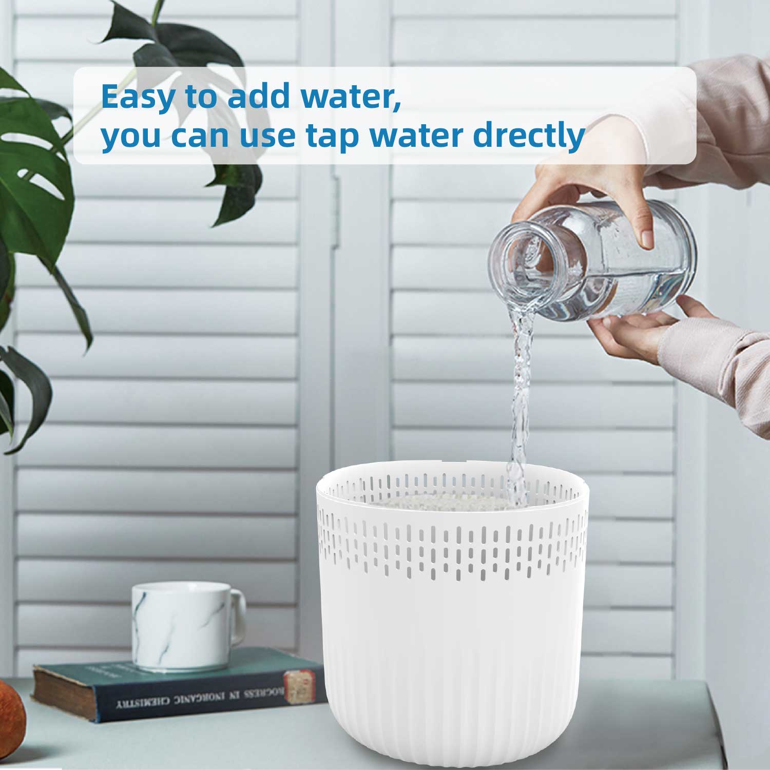 The humidifier has a large tank capacity of 2L and can continue humidifying for many hours by easily adding water to the humidifier. The water tank is made of transparent material, which is convenient for users to add water at any time according to the water level display.