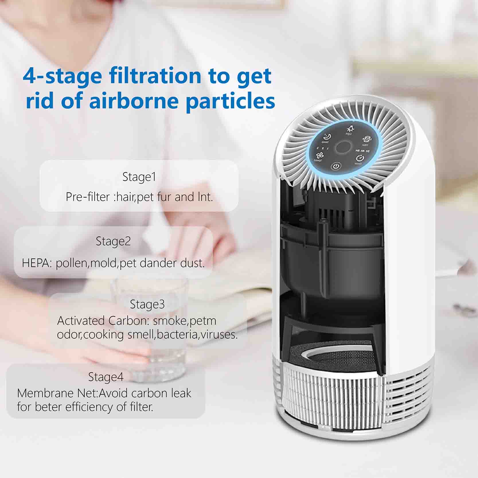 1. Zuverlässiges dreistufiges Filtersystem, ausgestattet mit Rohbaumwolle und Aktivkohlepartikelfilter, das Staub, Pollen, Rauch, Geruch, Schimmelpilzsporen und Tierhaare reduzieren kann.