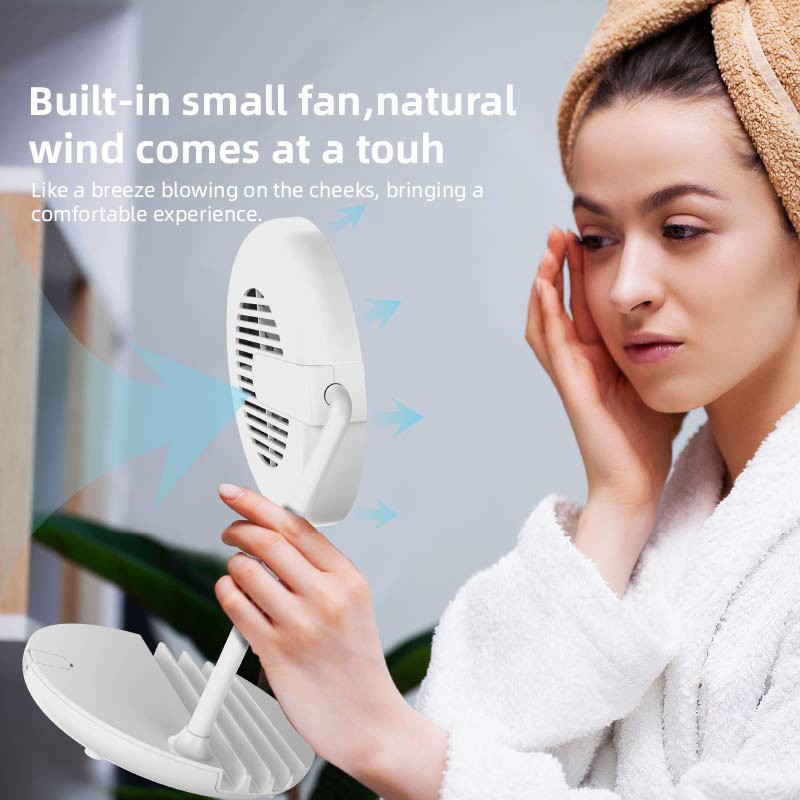 Lüfterfunktion für den Sommer: Der Kosmetikspiegel mit Ventilator sorgt im heißen Sommer für ein kühles und angenehmes Erlebnis. Durch Einschalten des Ventilators werden sowohl der Spiegel als auch die umgebende Haut trocken und frisch gehalten.