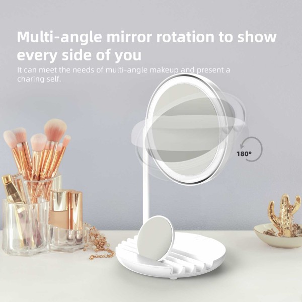 Freie Winkeleinstellung: Die Halterung kann frei gedreht und geneigt werden, die Winkeleinstellung ist frei, kann vielfältig verwendet werden und hilft Ihnen, den herkömmlichen Schminkspiegel loszuwerden, wenn die umständliche Positionseinstellung erforderlich ist.