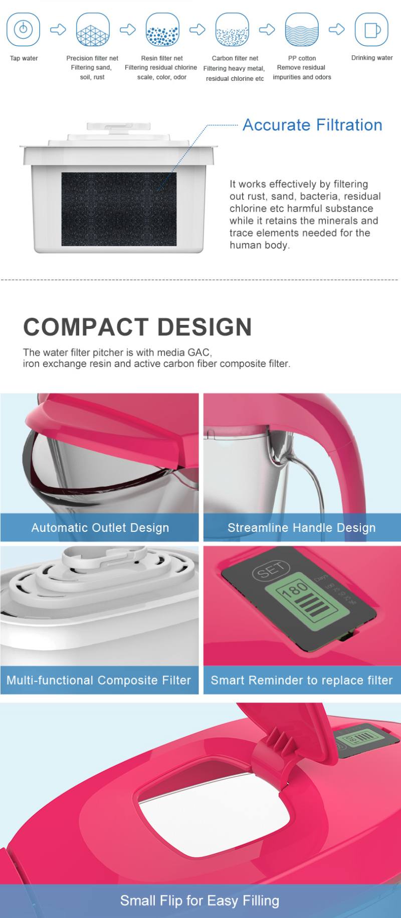 4、 Durch das wasserdichte Design der oberen Abdeckung und des Wasserfilters kann verhindert werden, dass beim Ausgießen von Wasser ungefiltertes Wasser aus der Wasserdüse fließt.
