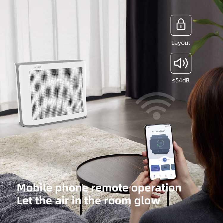 Intelligenter Luftreiniger mit WiFi-Steuerung für Zuhause; Stummschaltungsmodus; Intelligenter Timer; Luftqualitätssensor; Vier Luftventilatoren sind einstellbar
